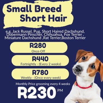 e.g. Jack Russel, Pug, Short Haired Dachshund, Dobermann Pinscher, Chihuahua, Fox Terrier, Miniature Dachshund, Rat Terrier, Boston Terrier, French Bulldog