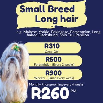 e.g. Maltese, Yorkie, Pekingese, Pomeranian, long haired Dachshund, Shih Tzu, Papillon